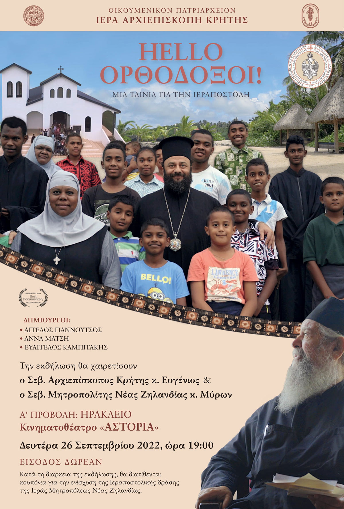 Εκδήλωση - προβολή ταινίας για την Ιερά Μητρόπολη Νέας Ζηλανδίας στο κινηματοθέατρο Αστόρια 22-9-2022